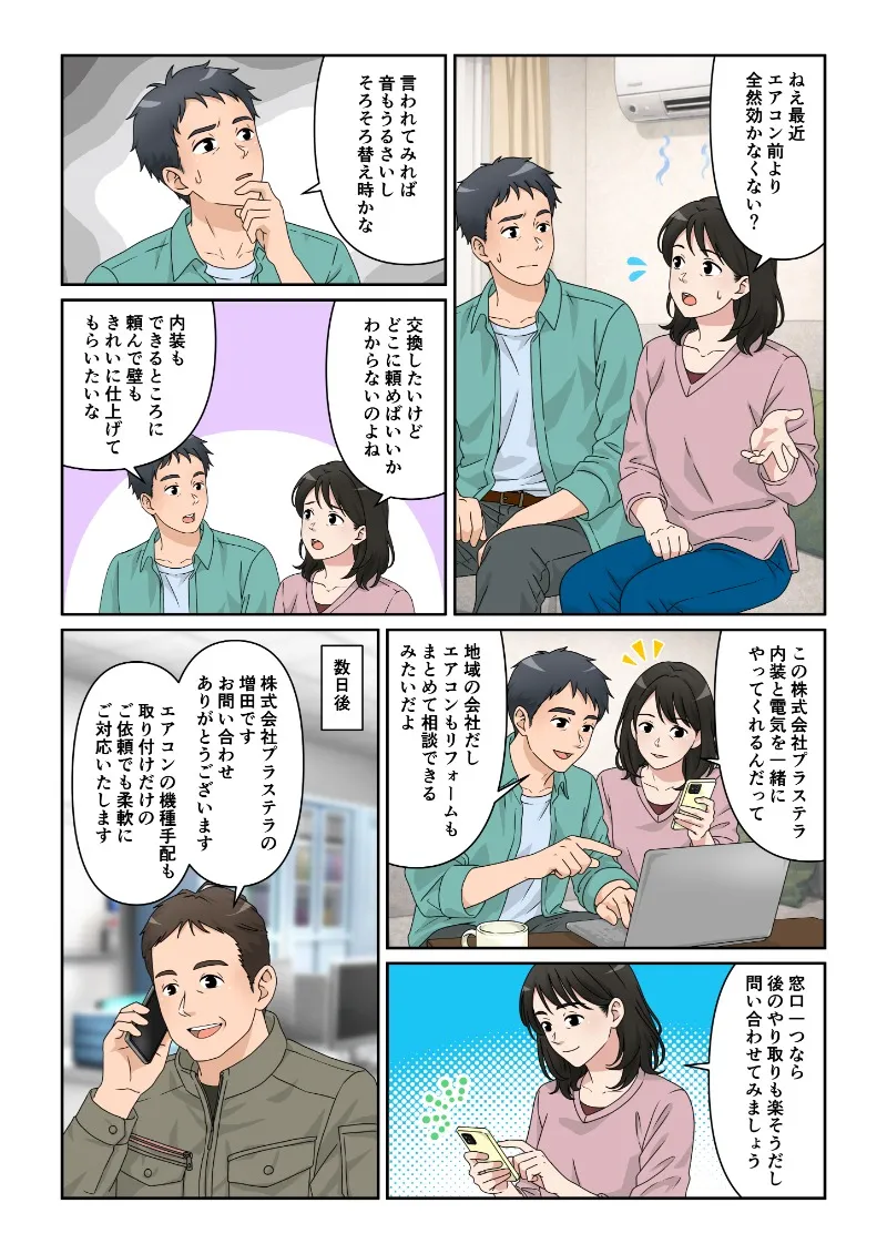 旦那「地域の会社だしエアコンもリフォームもまとめて相談できるみたいだよ」